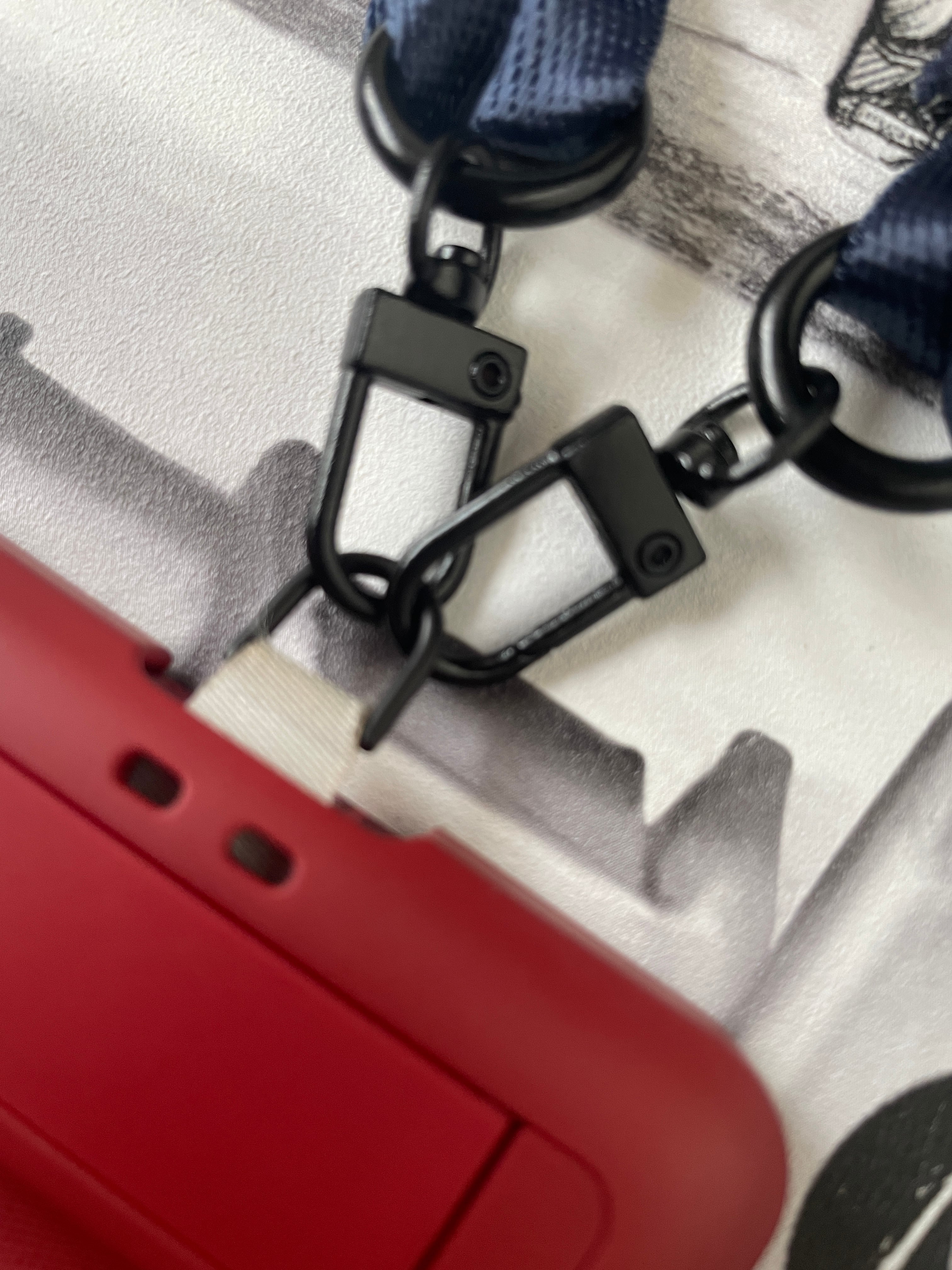 ①スマホケースやポーチ等小型のものに取り付ける商品です。